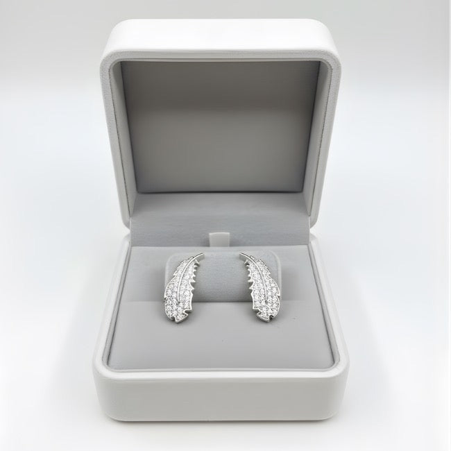 Elegant Sterling Silver Feather Earrings with CZ Crystals