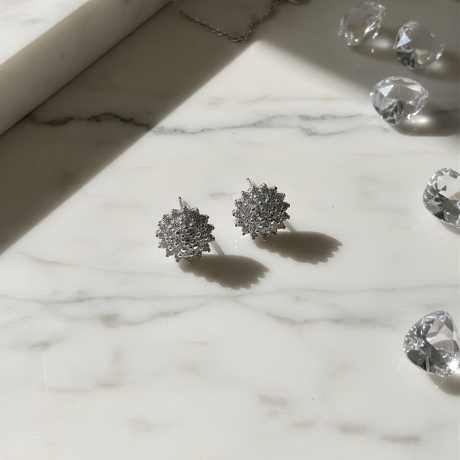 Elegant Sterling Silver Burst Stud Earrings – Cubic Zirconia Shine