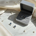 Make a sleek, modern statement with these Sterling Silver Blue CZ Stud Earrings, featuring a bold V-shaped pavé design that cradles a stunning round-cut blue cubic zirconia. The unique geometric silhouette adds a fresh edge to a classic stud style, perfect for both everyday wear and elevated occasions.