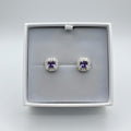 Sterling Silver Cushion-Cut Amethyst CZ Halo Stud Earrings