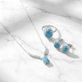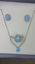 Luxury Blue Fire Opal & Halo Crystal Jewelry Set - 925 Sterling Silver (Necklace, Earrings & Ring)