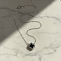Sterling Silver Black Clover Necklace with CZ Halo