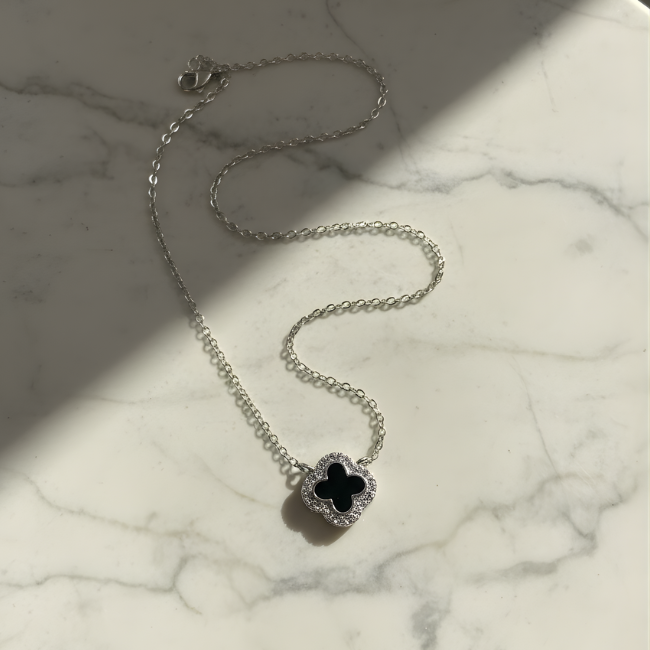 Add a touch of luck and timeless elegance to your collection with this exquisite Black Clover Necklace. Crafted from premium .925 Sterling Silver, this piece features a classic four-leaf clover motif—a universal symbol of good fortune.