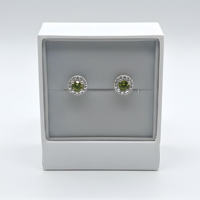Sterling Silver Round Peridot Green Halo Stud Earrings