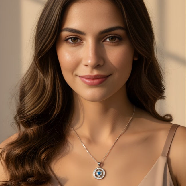 Wear a symbol of faith and protection with elegance. This intricate Star of David Pendant features a six-pointed star design interwoven within a circle, cast in genuine Sterling Silver.
