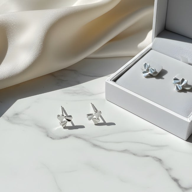Celebrate the bonds that matter most with our Sterling Silver Triple Heart Cluster Stud Earrings. A modern twist on a classic symbol, these studs feature a charming trio of hearts united together, representing the harmony of past, present, and future—or the special connection between loved ones.