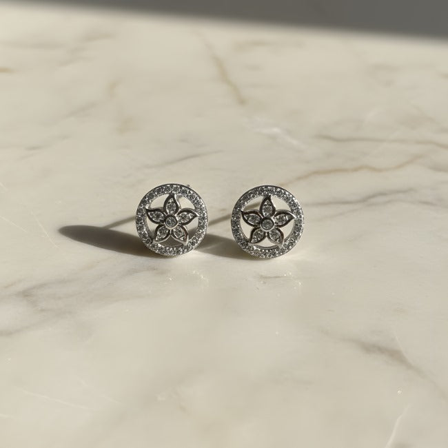 Sterling Silver Floral Halo Stud Earrings – Elegant Sparkle”