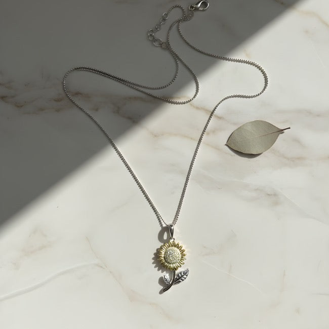Elevate your style with this detailed sunflower pendant, combining mixed metals for a versatile look. The piece is constructed from high-quality sterling silver with a durable finish.